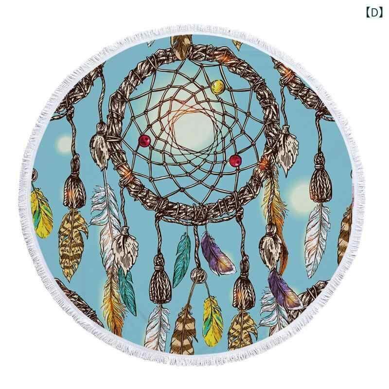 ビーチタオル マイクロファイバー ポリエステル 円形 大判 150cm 吸水 速乾 ドリームキャッチャー柄 プリント フリンジ おしゃれ ヨガマット レジャーシート バスタオル 海水浴 プール アウトドア スポーツ 旅行