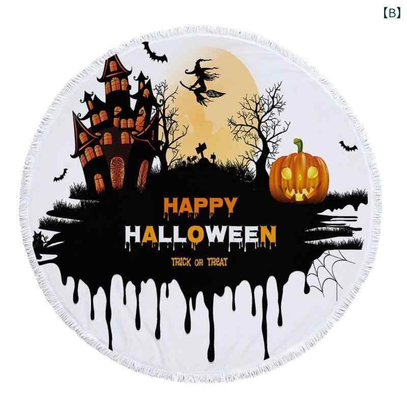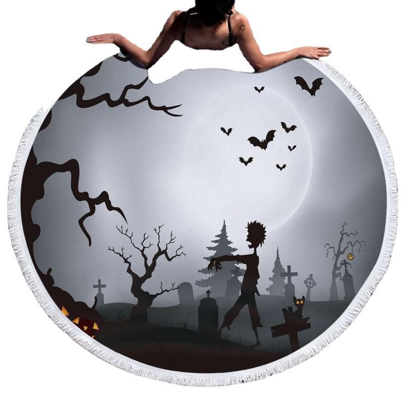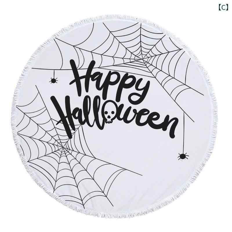 ビーチタオル ハロウィン 円形 マイクロファイバー フリンジ付き デジタルプリント 吸水速乾 大判 海水浴 プール レジャー アウトドア