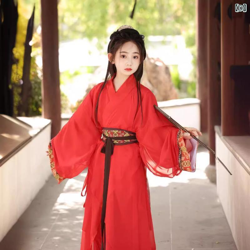 漢服 女の子 キッズ 中国風 戦国袍 直裾袍 交領 花柄 発表会 イベント 衣装 セットアップ オレンジ かわいい プリンセス