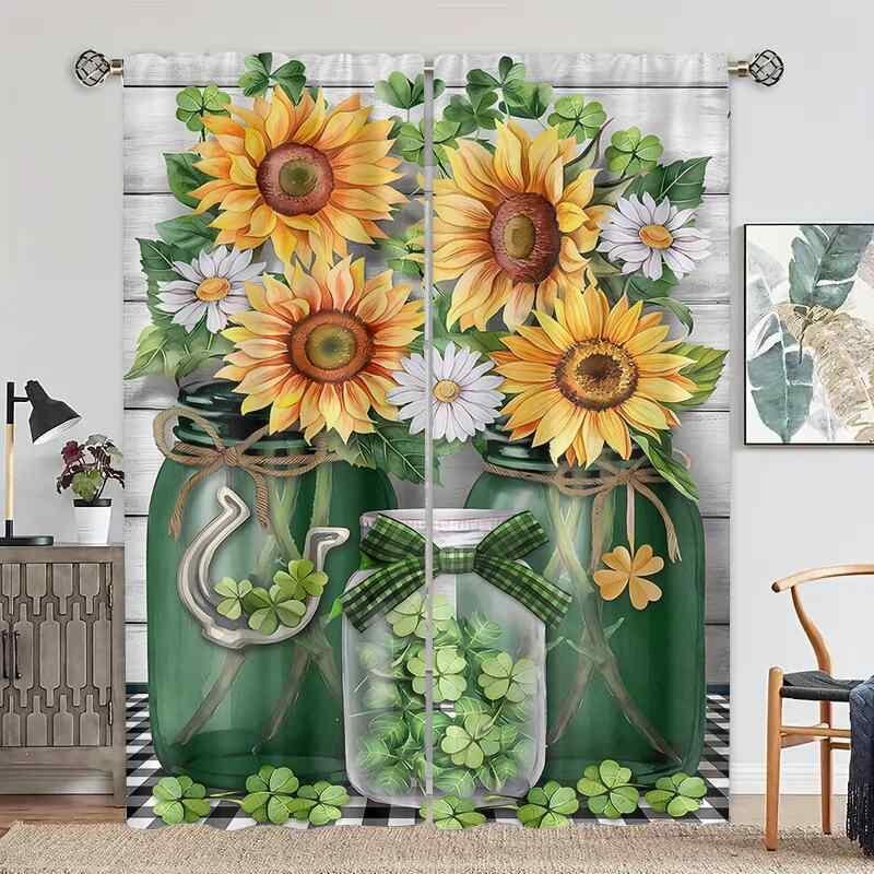 カーテン ポリエステル 防水 防カビ 高遮光 ひまわり デイジー柄 寝室用 オフィス用 キッチン用 リビング用 書斎用 インテリア装飾