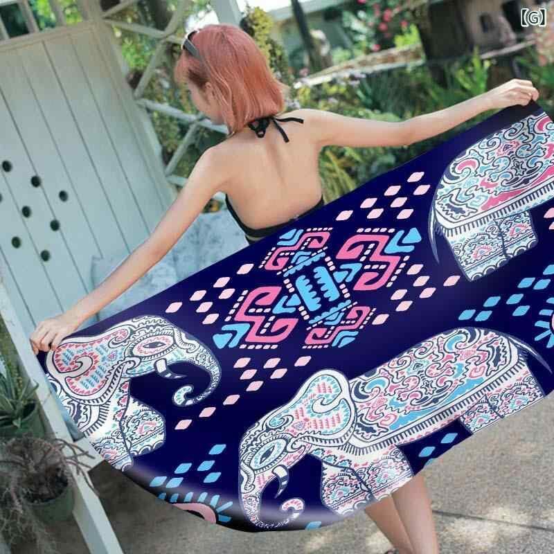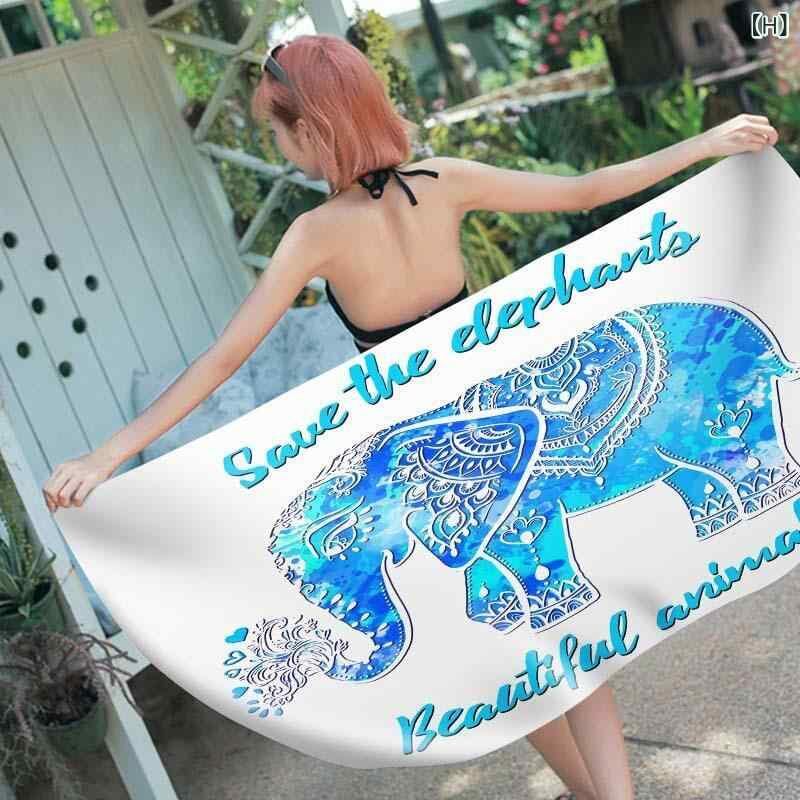 ビーチタオル 四角形 マイクロファイバー ポリエステル素材 吸水速乾 軽量 大判 ゾウ柄 旅行 海水浴 プール スポーツ レジャー 温泉 アウトドア バスタオル