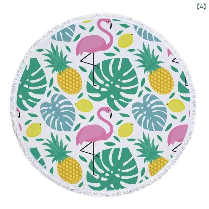 ビーチタオル フラミンゴ柄 円形 サークル型 マイクロファイバー 速乾 吸水 フリンジ付き タッセル デジタルプリント 大判 海水浴 プール レジャー アウトドア 春夏