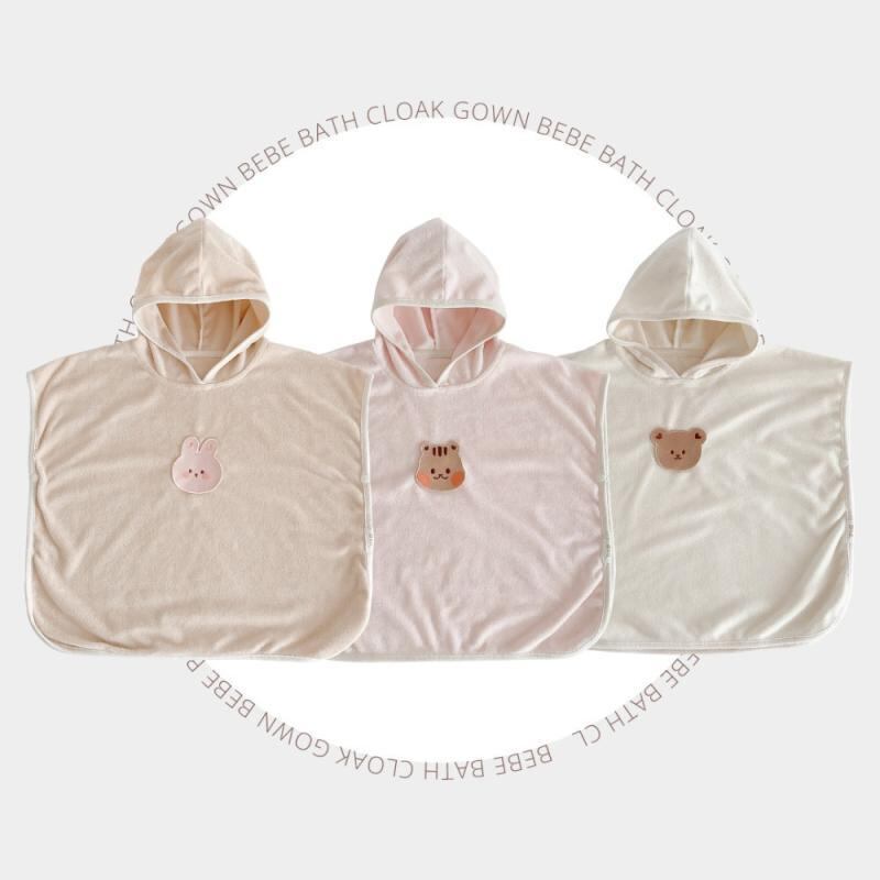 キッズ ベビー バスローブ ポンチョ型 クマ柄 フード付き 綿100% 超ソフト 吸水速乾 ふんわり やわらか お風呂上がり プール 水遊び バスタオル 赤ちゃん