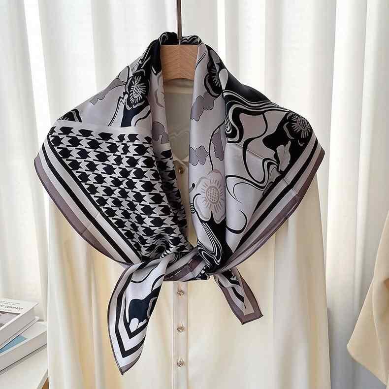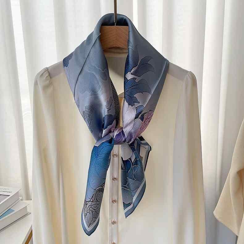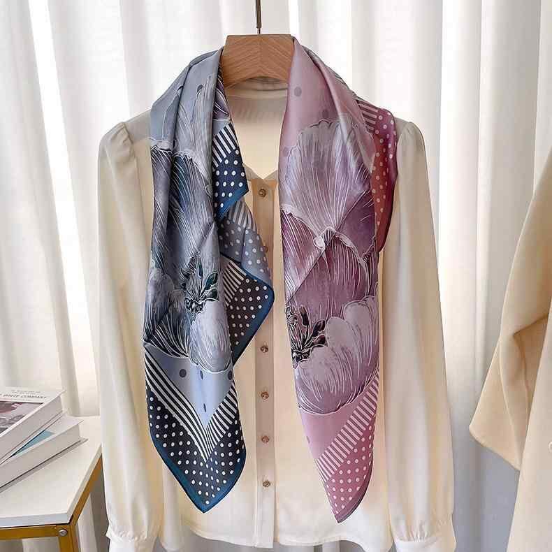 スカーフ レディース 女性用 シルク 100% 絹 正方形 スクエア 大判 エレガント 上品 春夏 アート花柄 切り替え 薄手 軽量 ファッション おしゃれ 普段使い オフィス カジュアル ストール
