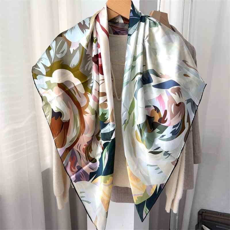 ストール レディース 桑蚕シルク100% 正絹 レトロ 上品 エレガント 大判 スクエア 牡丹 油絵風 花柄 アート スカーフ 女性用 普段使い オフィス カジュアル