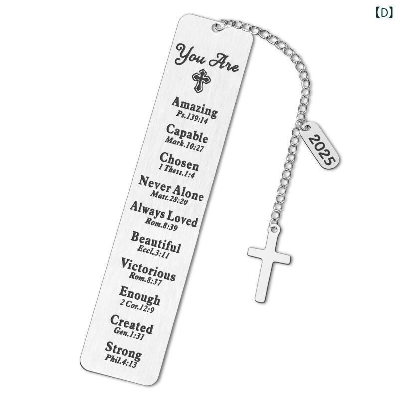 ブックマーク しおり 聖書モチーフ 十字架 ステンレス製 彫刻デザイン メッセージ入り ペンダント タッセル付き 高級感 読書用 おしゃれ ギフト