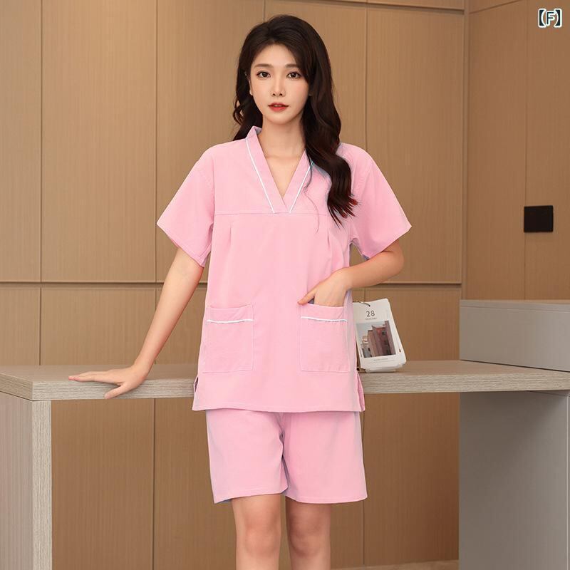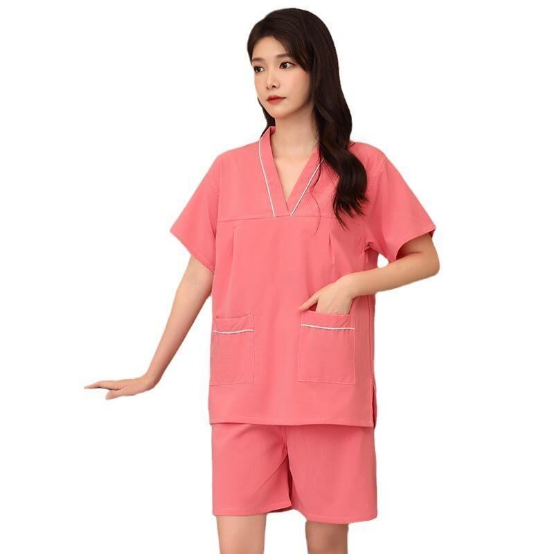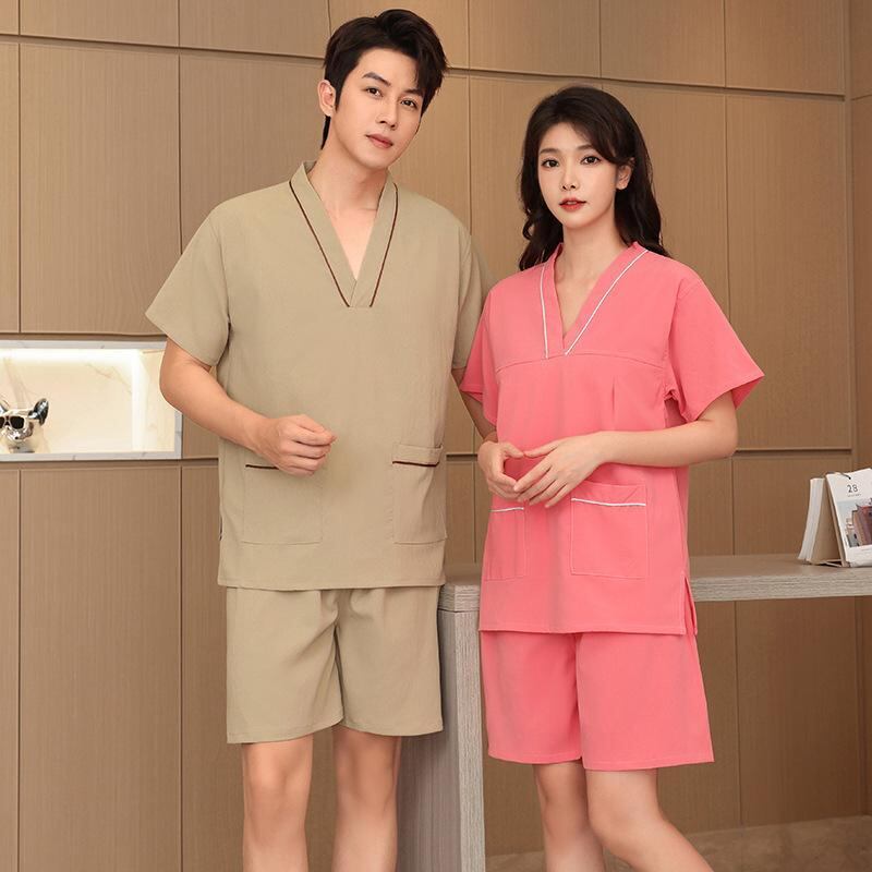 パジャマ 汗蒸し服 カップル 男女兼用 ホテル スパ 温泉 入浴 足つぼ マッサージ ルームウェア 大きいサイズ 高級感 ゆったり 快適 ポリエステル 綿 再生繊維 混紡 五分袖 ハーフパンツ