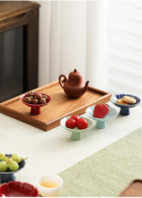 陶磁器 脚付き デザート皿 新中華風 高足 フルーツプレート レトロ アンティーク調 菓子皿 小皿 上品 禅風 茶菓子 ドライフルーツ ナッツ用