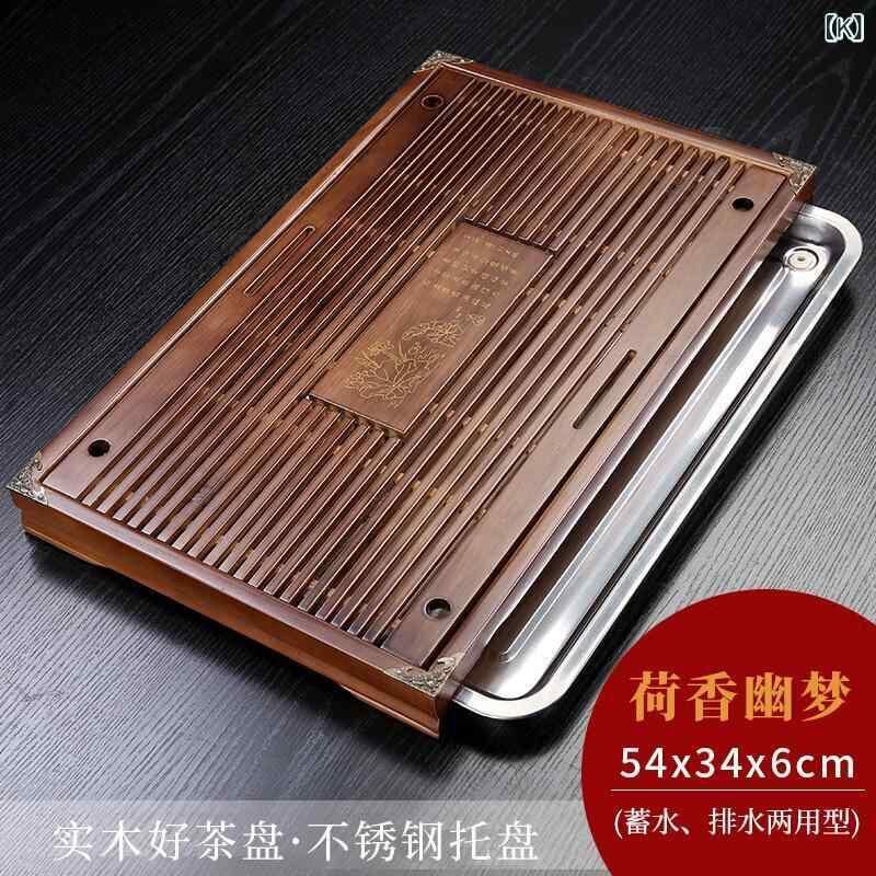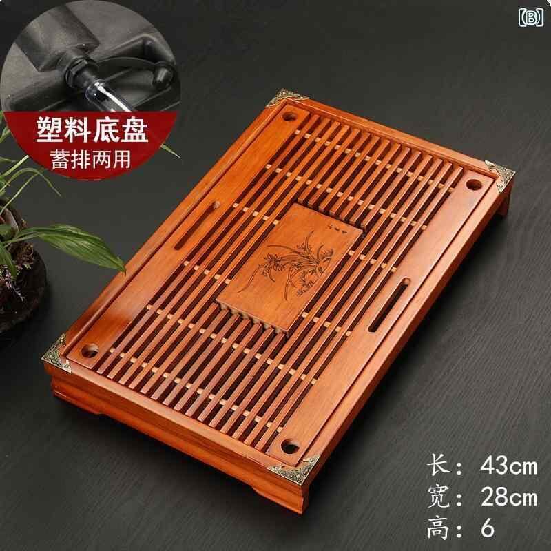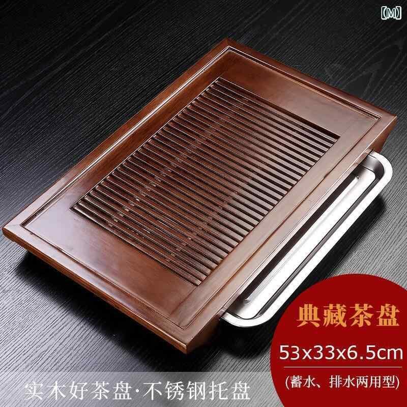 トレイ 茶盤 無垢材 家庭用 功夫茶器 茶台 排水機能 貯水機能付き 茶托 トレー セット 木製 ウッドカラー 天然素材 シンプル モダン 中国風 普段使い 来客用