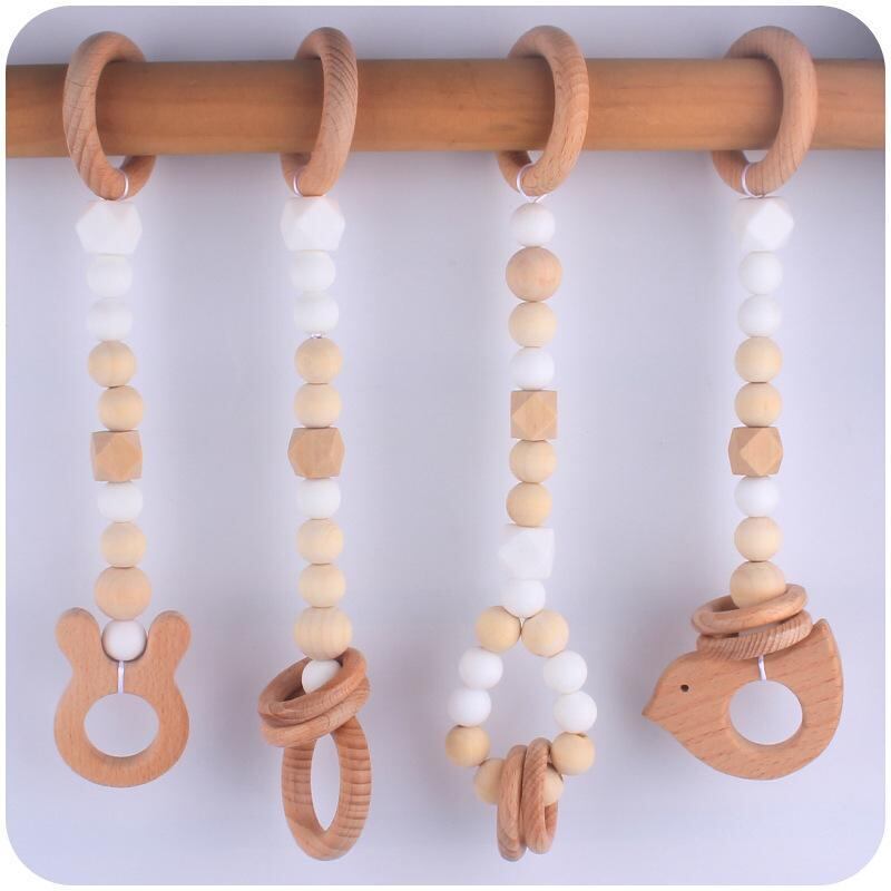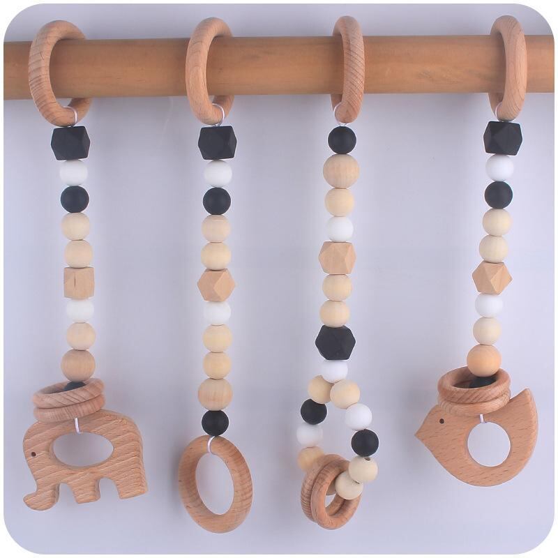 プレイジム ベビー 赤ちゃん 乳幼児 子供用 ブナ材 シリコン製 歯固め おもちゃ ゾウ 小鳥 モビール 4点セット 知育玩具 室内遊具 出産祝い ギフト 部屋装飾 インテリア かわいい
