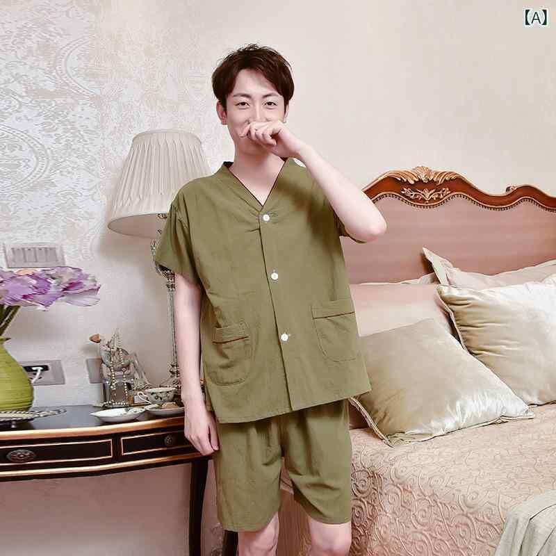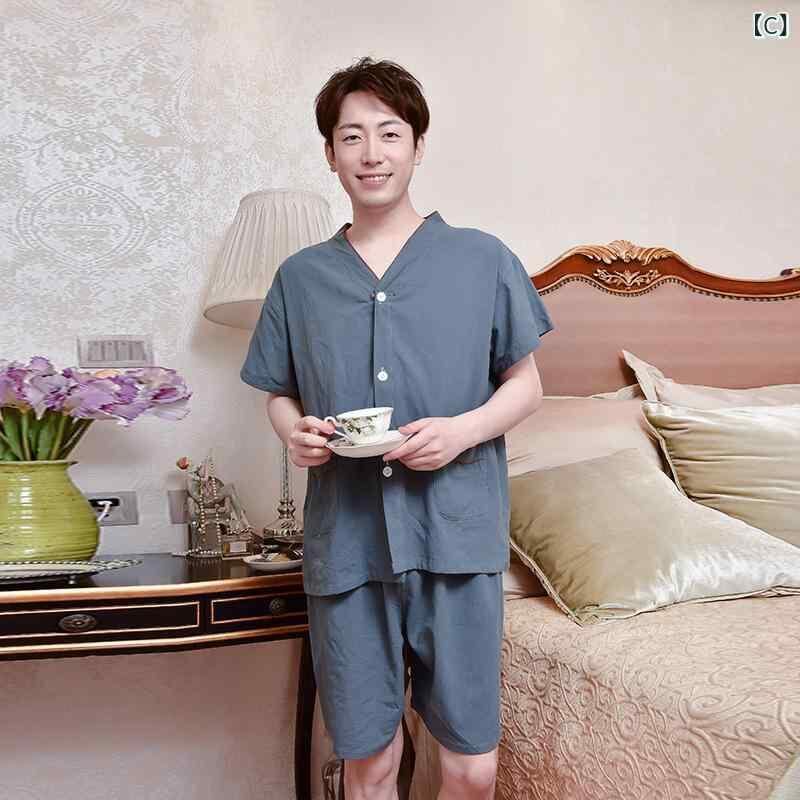 パジャマ 施術着 男女兼用 艾灸 鍼灸 ヘッドスパ エステ 火療 カッピング リラックスウェア 前後開き ショート丈 半袖 綿100% コットン シンプル ナチュラル 春夏