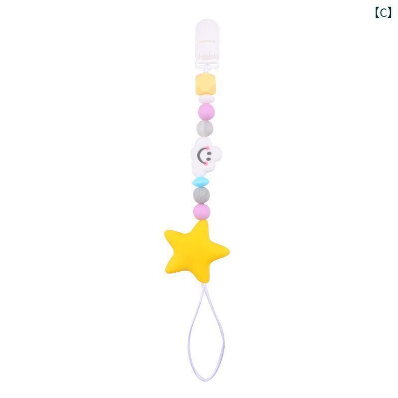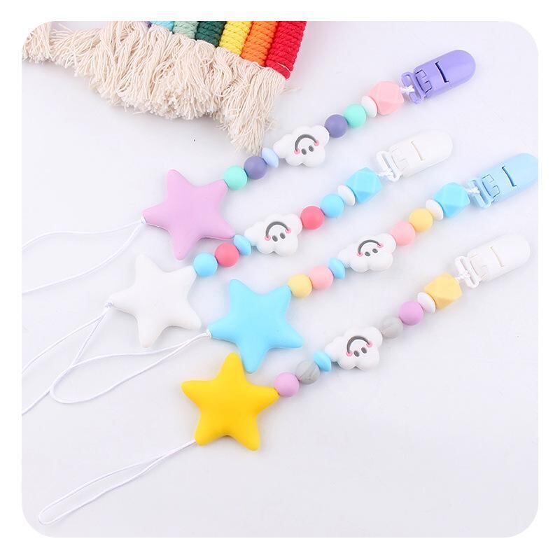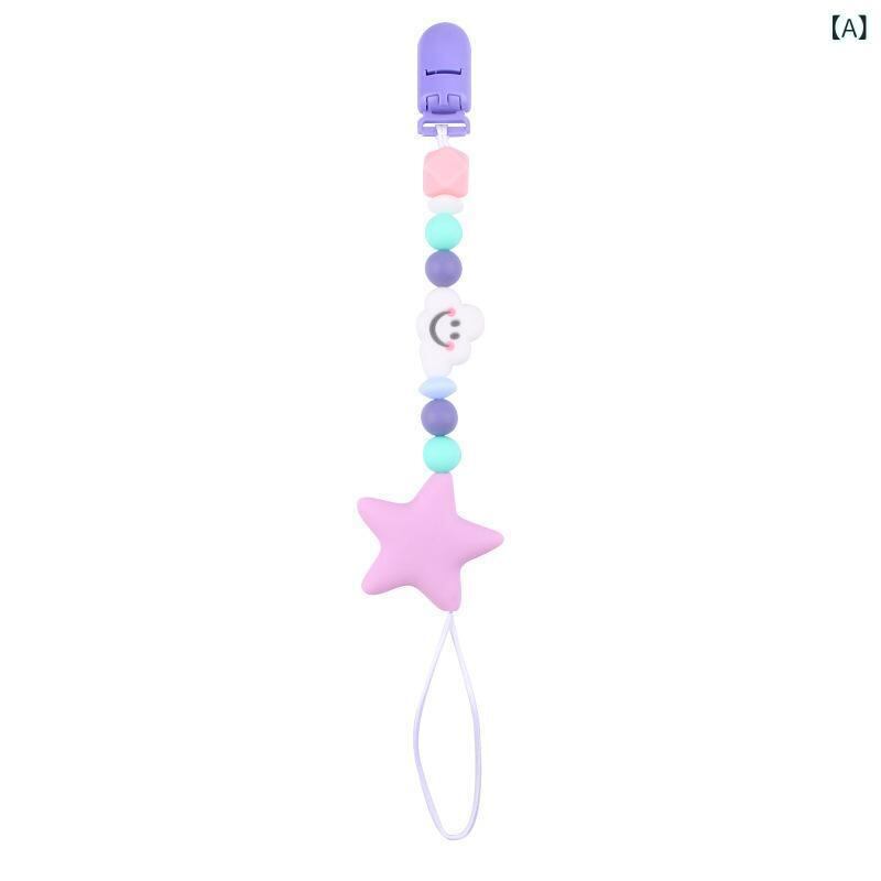 ベビー用品 赤ちゃん かわいい 雲 キャラクター おしゃぶりホルダー 歯固め 落下防止ストラップ シリコンビーズ パープル ブルー イエロー ホワイト 出産祝い ギフト