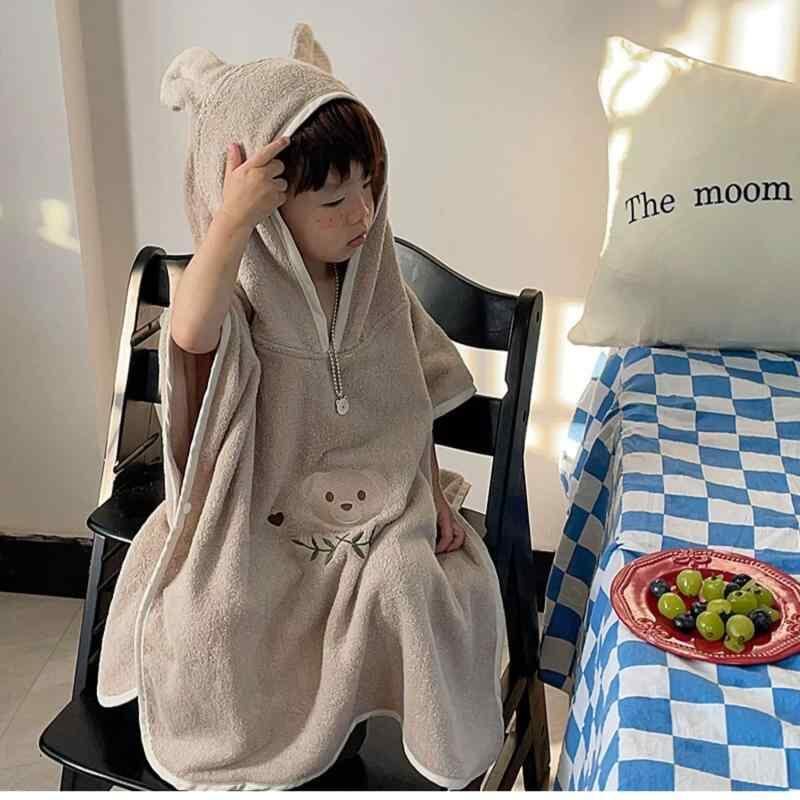 バスローブ キッズ ベビー 子供 フード付き ポンチョ 刺しゅう クマ 綿100% 吸水性 速乾性 柔らかい 肌触り お風呂上がり プール 水遊び 湯上り バスタオル ガウン