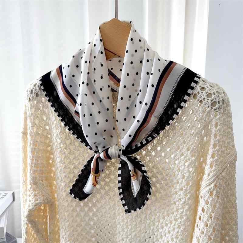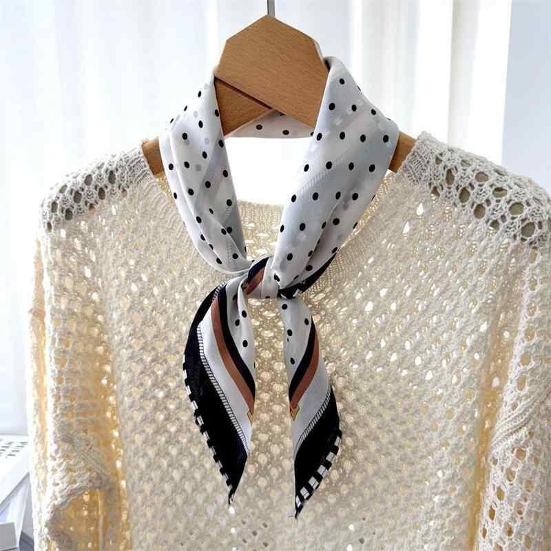 シルクスカーフ 春夏 シンプル おしゃれ ブラック ドット柄 桑蚕シルク100% スクエア ダブルクレープ 上品 エレガント フォーマル ビジネス 通勤 オフィス 普段使い ファッション小物