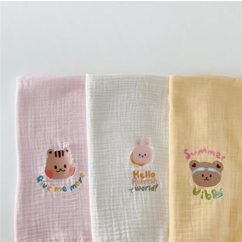ガーゼケット ベビー ブランケット おくるみ 三重層 綿100% コットン お昼寝 ベビーカー 幼稚園 保育園 動物柄 アニマル柄 クマ ウサギ リス カラフル ソフト 軽量 吸湿 通気 オールシーズン
