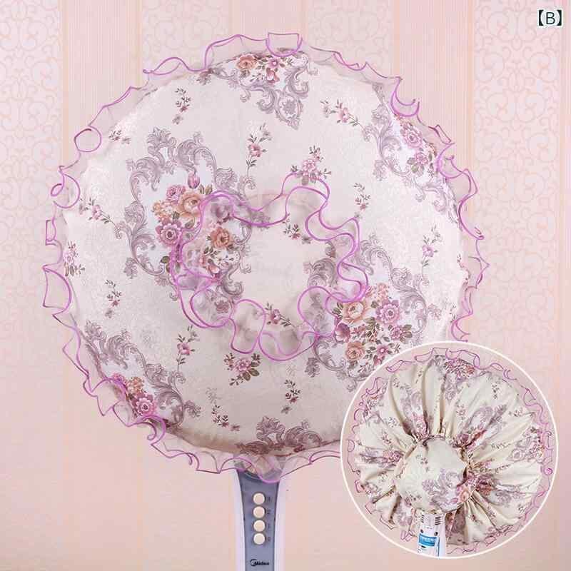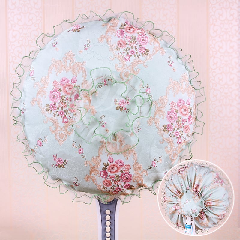 扇風機カバー 布製 ポリエステル綿 全面 防塵 フロアファン 卓上扇風機 兼用 レース 田園風 カントリー調 デザイン 3点セット グリーン パープル ブラウン