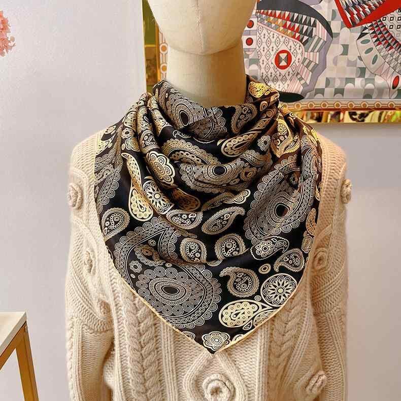 スカーフ レディース 桑蚕シルク シルクサテン ペイズリー柄 大判正方形 110cm ショール ストール 多用途 通勤 オフィス 普段使い 青 黒