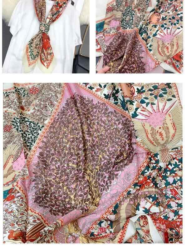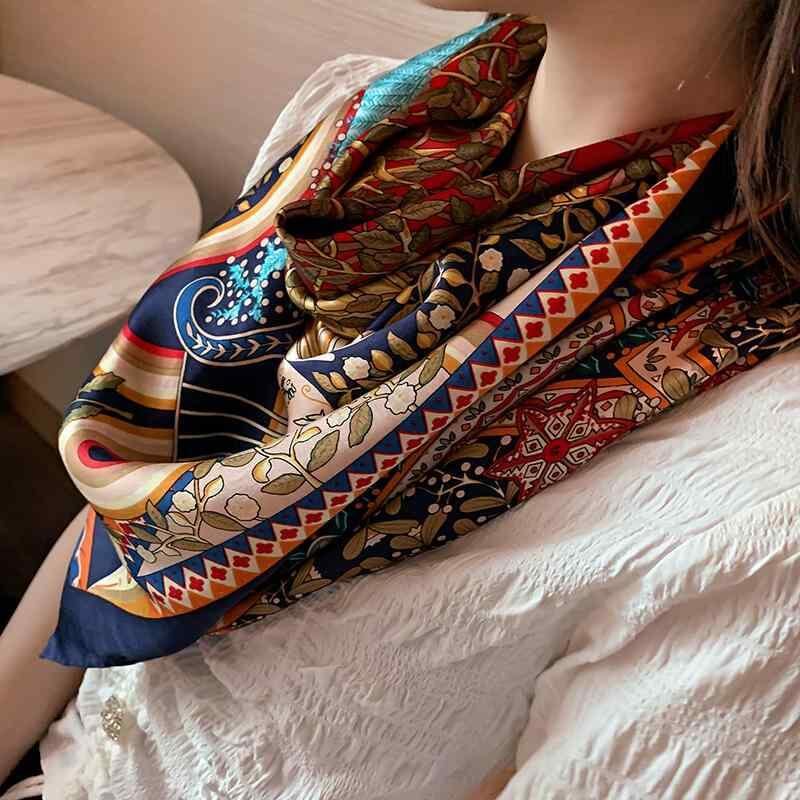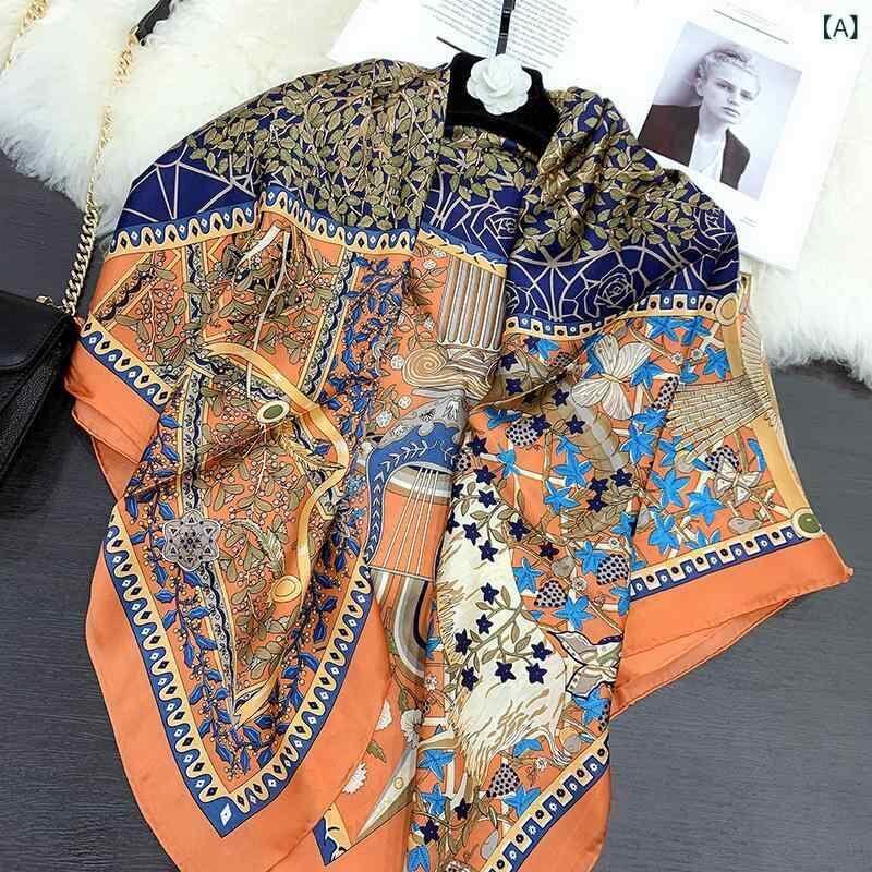 スカーフ レディース 春夏 シルク 絹 肌触り良い 柔らか 通気性 プリント柄 大判 正方形 おしゃれ エレガント ショール オレンジ ネイビー ベージュ