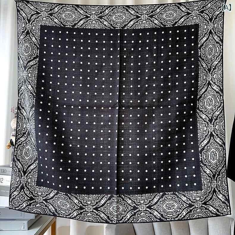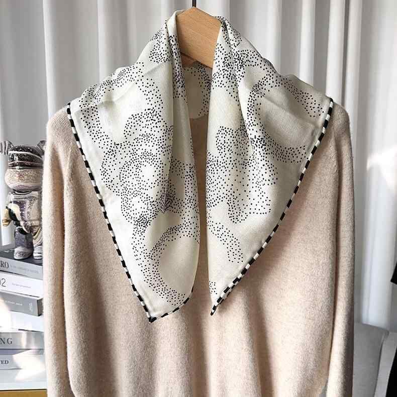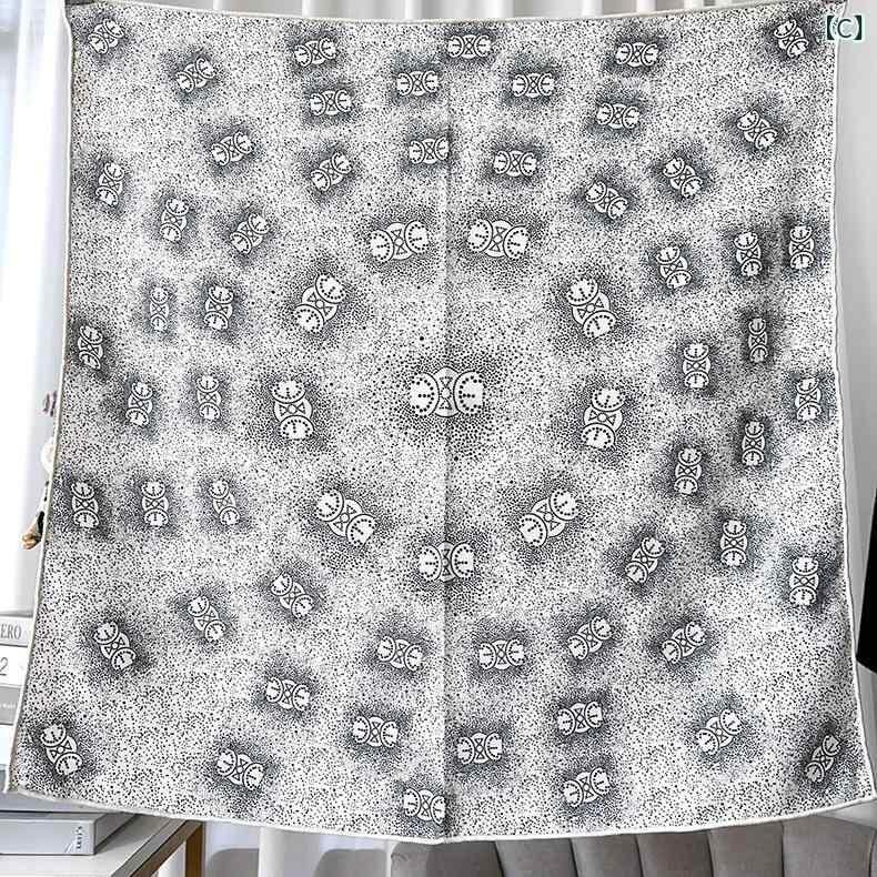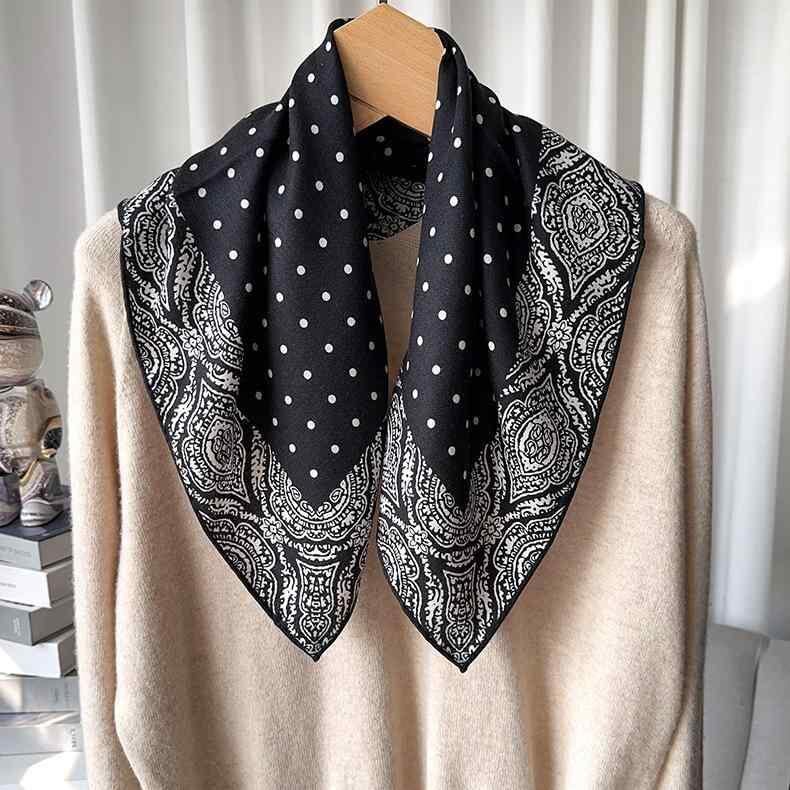 スカーフ レディース 定番 ドット柄 水玉模様 シルクウール混紡 保温 防寒 シンプル おしゃれ 上品 カジュアル 正方形 手巻きヘム 秋冬