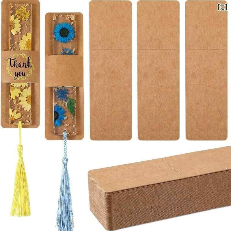 ブックマーク DIY作成キット 50個セット 樹脂クリップ クラフト紙 しおりスリーブ 無地 展示カード 紙製ペンケース 高級感 手作り 文具
