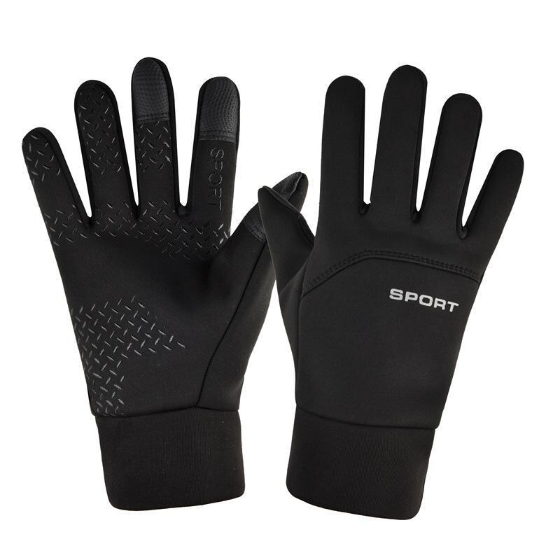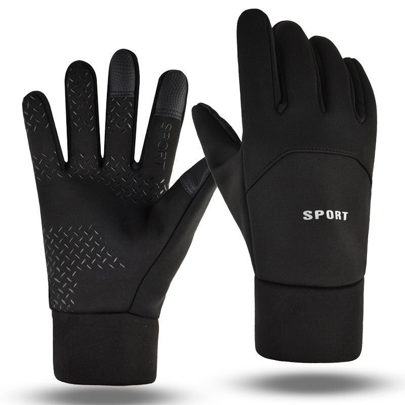 グローブ 男女兼用 メンズ レディース 大人 学生 サイクリング ランニング スキー バイク スポーツ アウトドア フィットネス 登山 防寒 保温 防水 防風 滑り止め タッチパネル対応 5本指 フリース ニット 伸縮性 秋冬 無地 切り替え ブラック