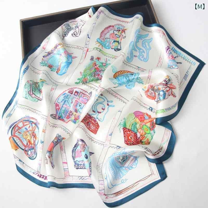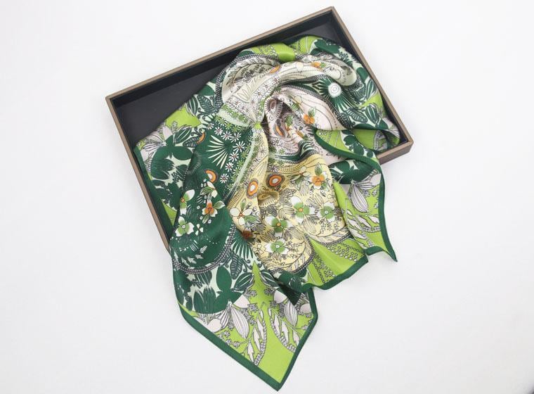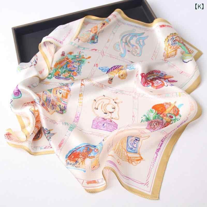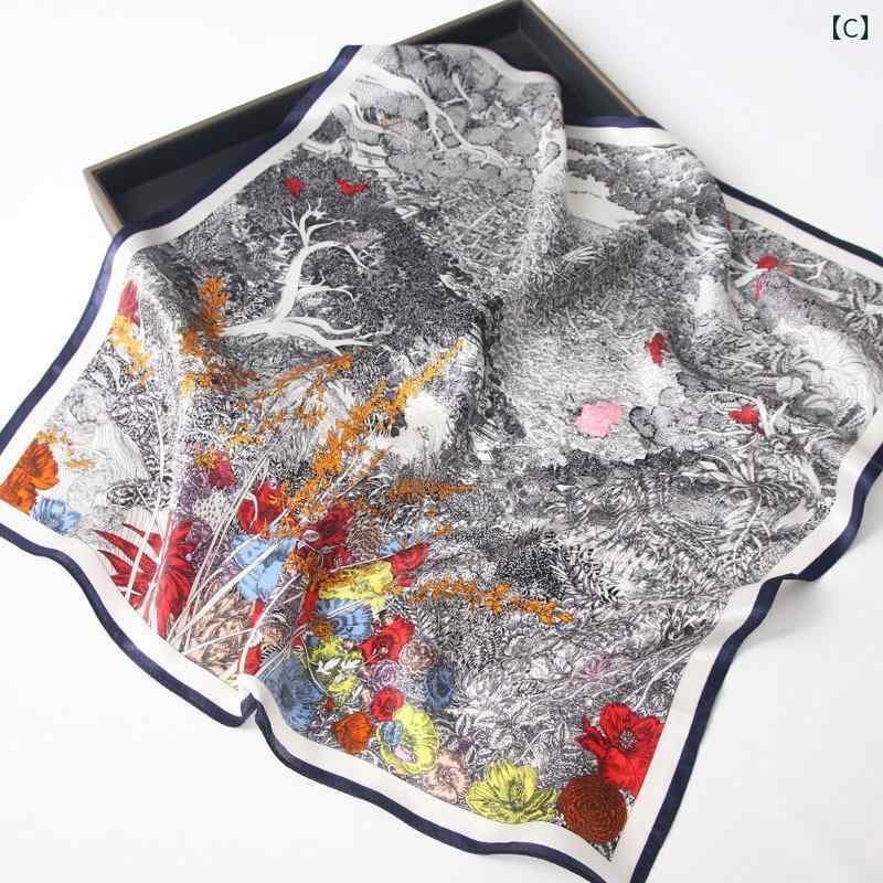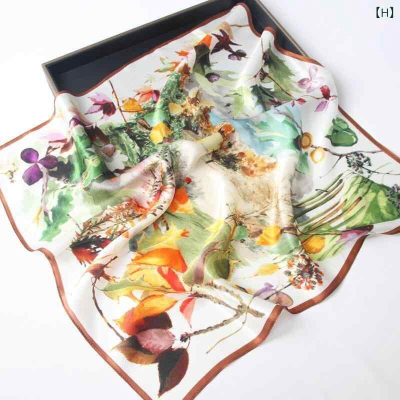 スカーフ レディース 春秋 シルク 絹 桑絹100% 高級感 光沢感 上品 小判 正方形 ミニスクエア 首元 おしゃれ 華やか コーディネート