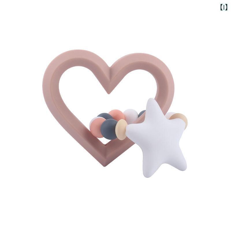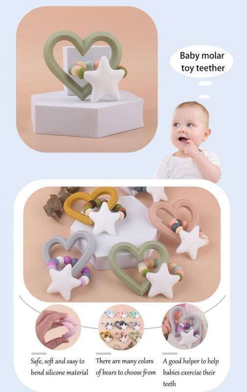 ベビー 乳幼児用 歯がため シリコン製 ハート型 ビーズ付き おしゃぶり機能 歯茎ケア ストレス軽減 安心素材 おもちゃ 出産祝い ギフト