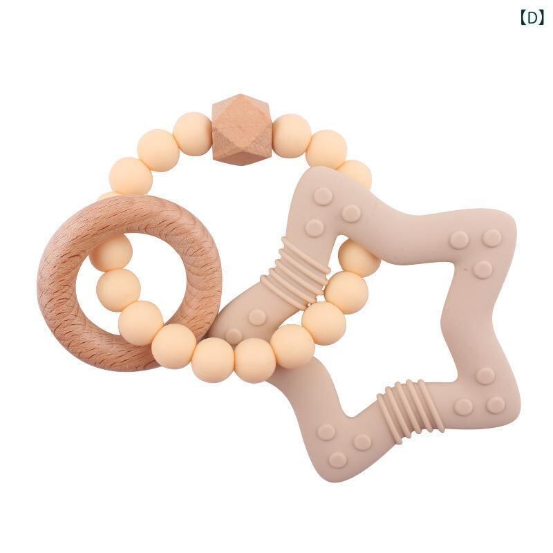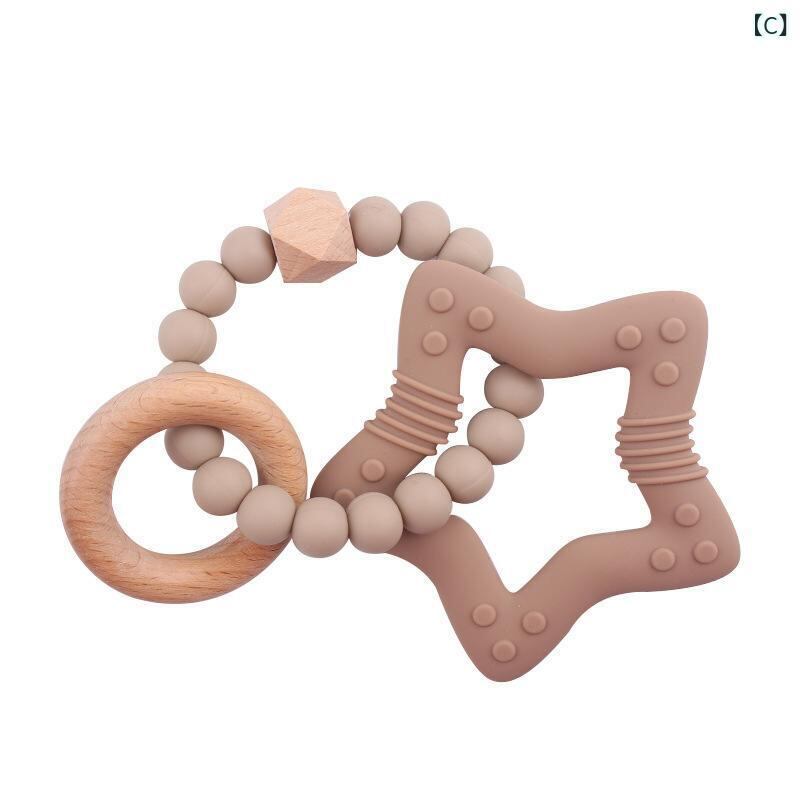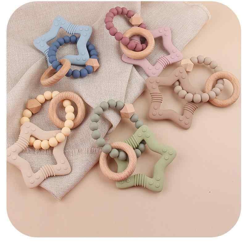 ベビー 星形 シリコンビーズ 歯がため ブレスレット ブナ材 DIY 知育玩具 握りやすい 安全素材 噛むおもちゃ 多色展開