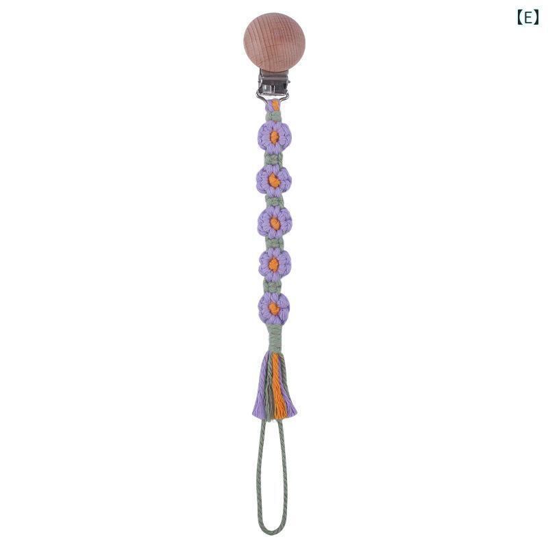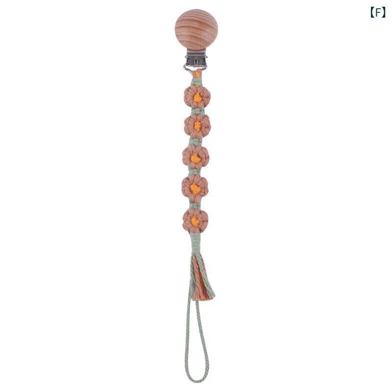 ベビー用品 赤ちゃん おしゃぶりホルダー ブナ材 コットン 編み込み 花柄 ハンドメイド 落下防止 ストラップ クリップ 乳幼児 新生児
