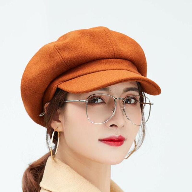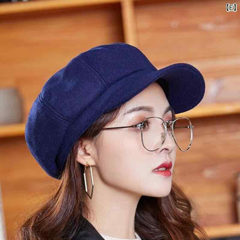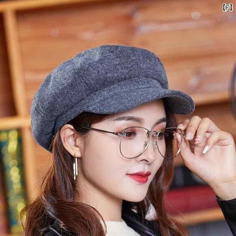 帽子 ワークキャップ 男女兼用 秋冬 ウール コットン混 無地 八角形 つば付き カジュアル 普段使い おしゃれ 韓国風 ショートブリム
