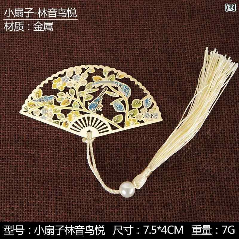 しおり ブックマーク 扇子型 真鍮製 メタル 中国風 古風 アジアンテイスト レトロ カラフル 色鮮やか 大小サイズ 観光地 お土産 記念品 プレゼント