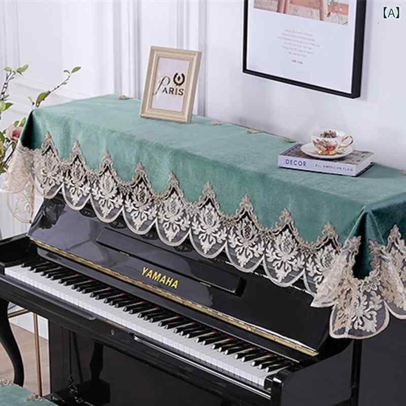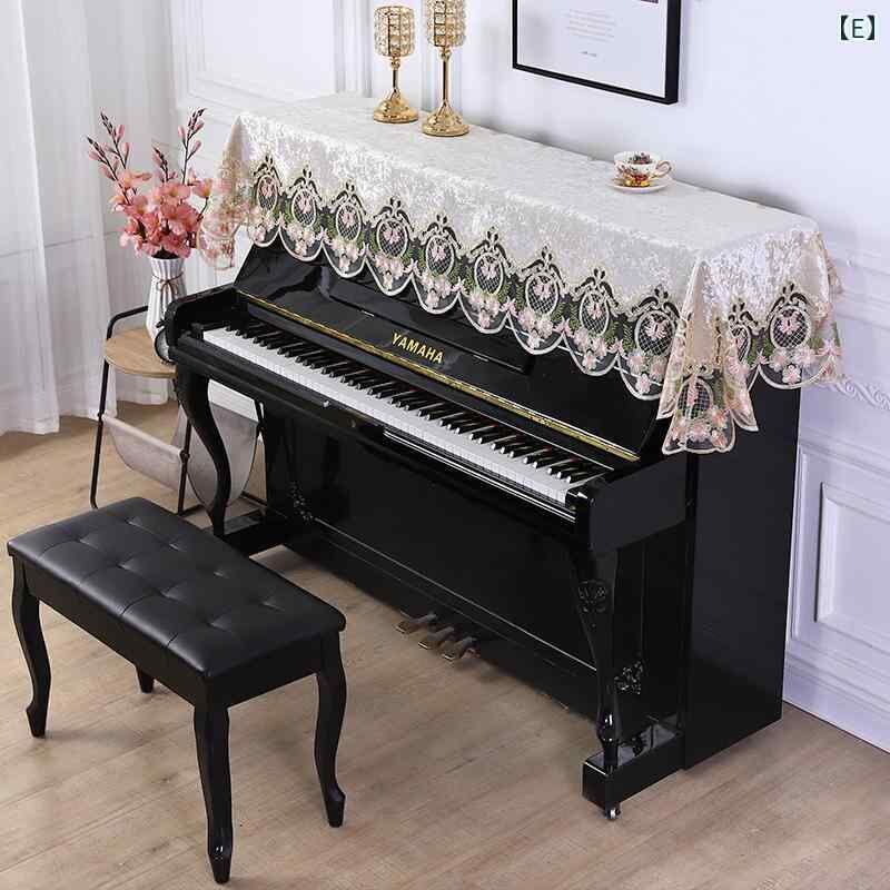 ピアノカバー ヨーロピアン 北欧 モダン シンプル レース 刺繍 布製 ポリエステル 電子ピアノ兼用 ハーフカバー 防塵 高級感