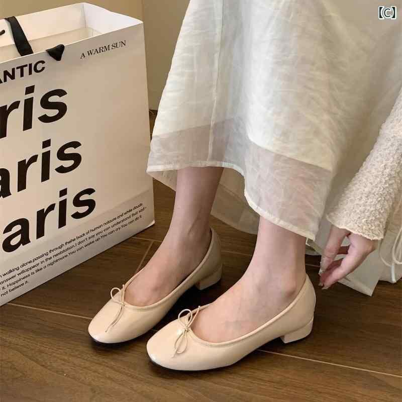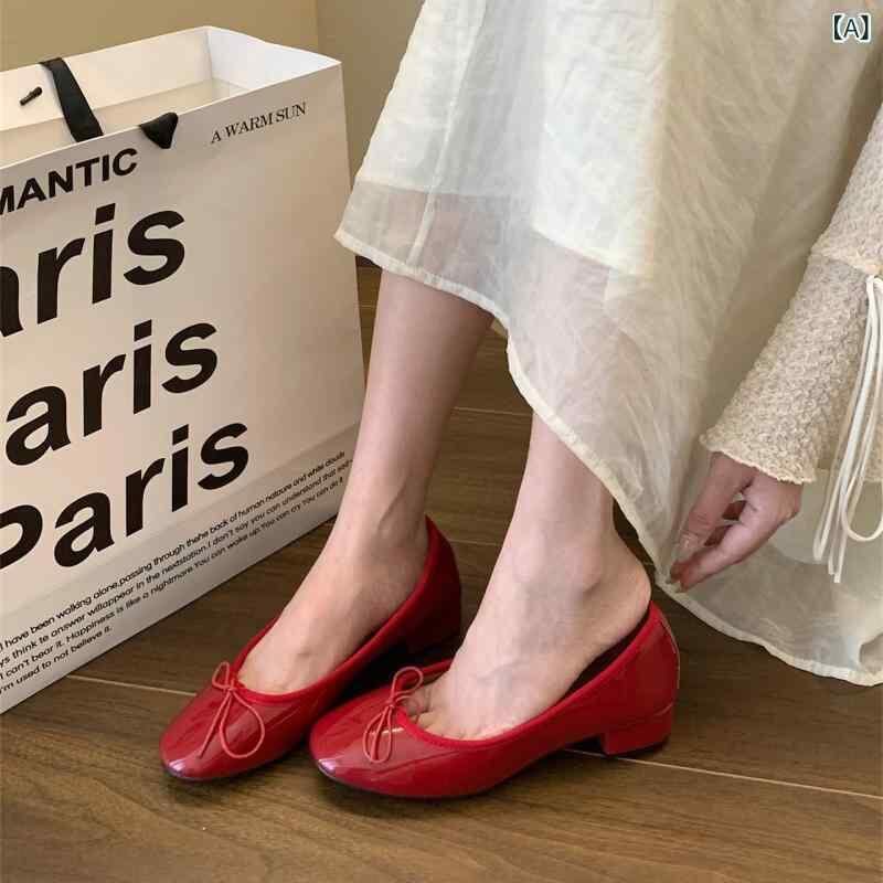 メリージェーン パンプス レディース レトロ クラシック 太ヒール チャンキーヒール リボン ボウ 赤 レッド エナメル ラウンドトゥ 普段使い デイリー 結婚式 パーティー フォーマル 春夏