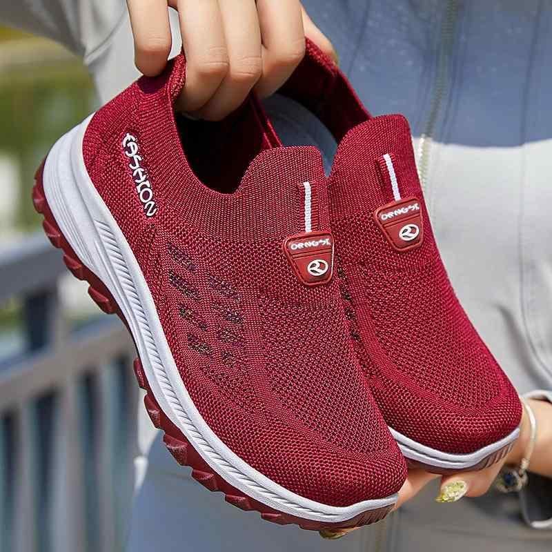 シューズ レディース シニア向け ニット スリッポン ラウンドトゥ 浅口 疲れにくい 軽量 柔らかソール 通気性 耐摩耗 普段使い ウォーキング カジュアル 春夏秋