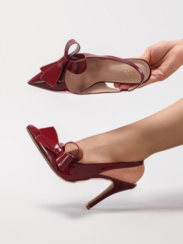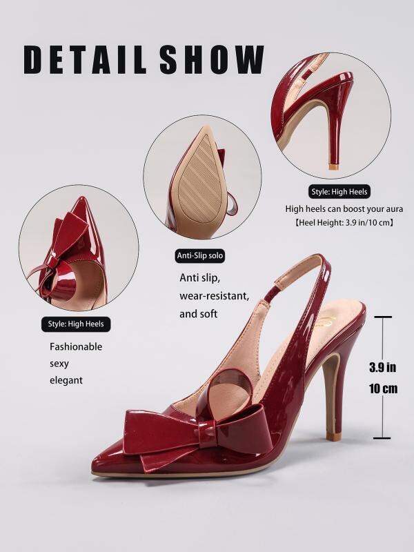 サンダル レディース リボン ハイヒール ポインテッドトゥ エナメル バックストラップ 結婚式 パーティー 披露宴 フォーマル エレガント ピンヒール 美脚 春夏