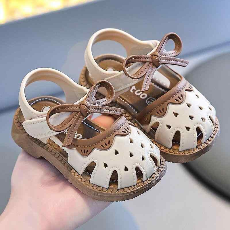 サンダル ベビー 女の子 プリンセス風 クローズトゥ 通気性 柔らかソール 滑り止め 防水 PVC製 くり抜きデザイン ブラウン ホワイト 丈夫 ファーストシューズ