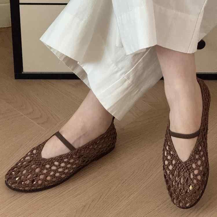サンダル レディース 羊革 シープスキン 編み込み メッシュ パンチング 個性的デザイン 快適 通気性 フラットシューズ ぺたんこ靴 エスパドリーユ ラウンドトゥ ローヒール カジュアル 無地 春夏 シルバー ブラウン