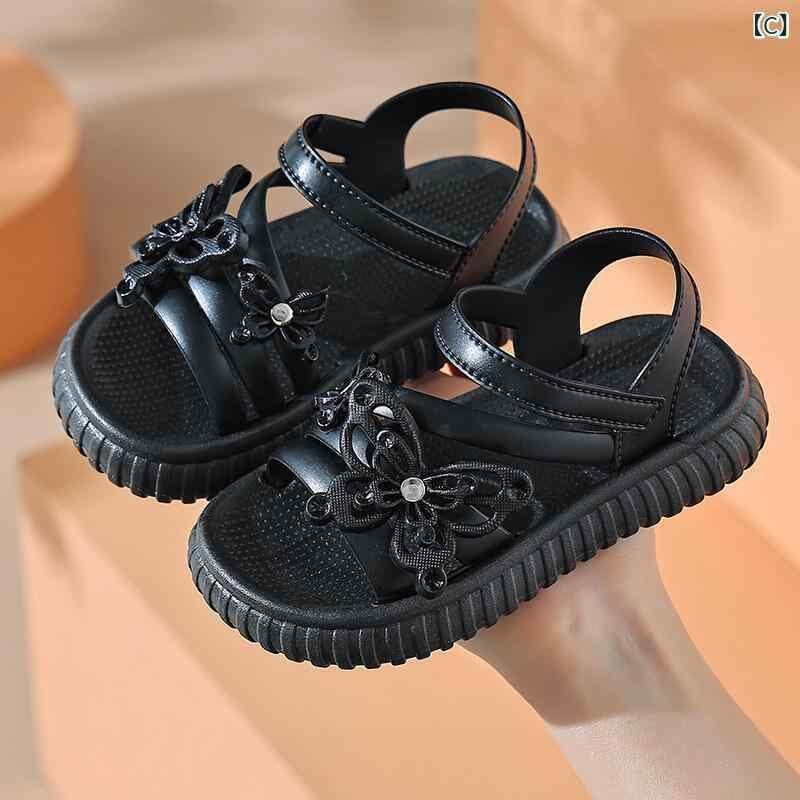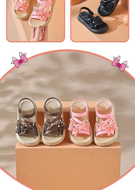 サンダル 女の子 子供用 キッズ ガールズ プリンセス フラットソール ソフトソール おしゃれ かわいい ファッション 普段使い サマー ビーチ リゾート 海 水遊び 軽量 PVC ピンク カーキ 黒 韓国風 カジュアル