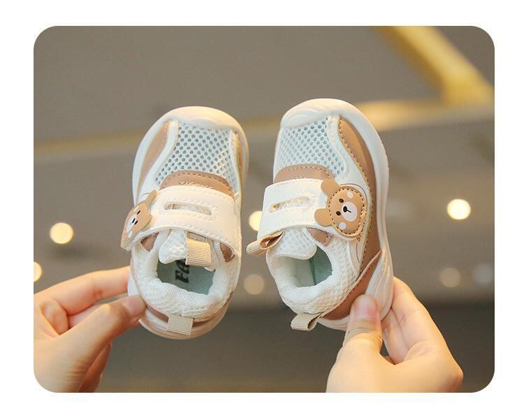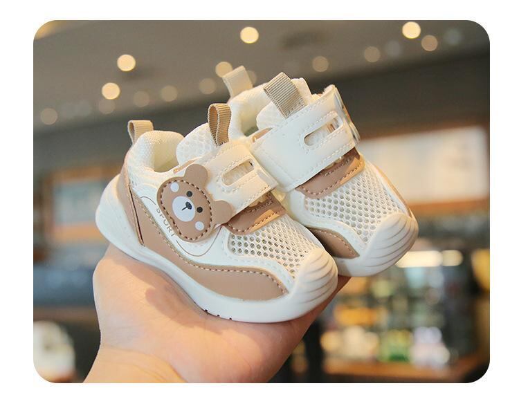 ベビーシューズ 男の子 女の子 1歳 2歳 3歳 春夏秋 ソフトソール メッシュ 通気性 滑り止め ファーストウォーカー よちよち歩き マジックテープ スニーカー カーキ ピンク