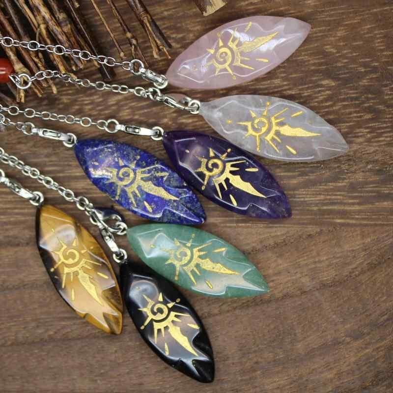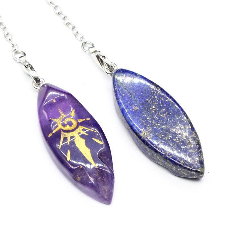 ペンデュラム 天然石 水晶 幾何学デザイン 太陽モチーフ 振り子 アメジスト ローズクォーツ クリアクォーツ ラピスラズリ タイガーアイ 占い ヒーリング スピリチュアル お守り 研磨加工