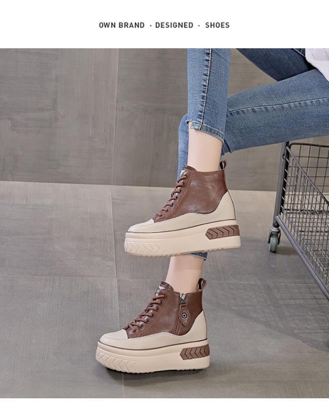 ・カテゴリ: インヒールシューズ・スタイル: ユニセックス・性別: レディース・対象年齢: 大人・つま先形状: ラウンドトゥ・アッパー素材: 牛床革・ソール素材: ポリウレタン・ライニング素材: コットン・インソール素材: マイクロファイバーレザー・ヒールの高さ: 6~8cm・筒丈: ハイカット・ソール製法: 接着剤・留め具: レースアップ、ファスナー・デザイン要素: 配色、ウェッジソール、太ヒール、プラットフォーム、クロスストラップ、ストーム、インヒール・機能: 通気性、保温性、耐摩耗性・シーン: カジュアル・カラー展開: ブラック、ブラウン・サイズ展開: 34、35、36、37、38、39、40