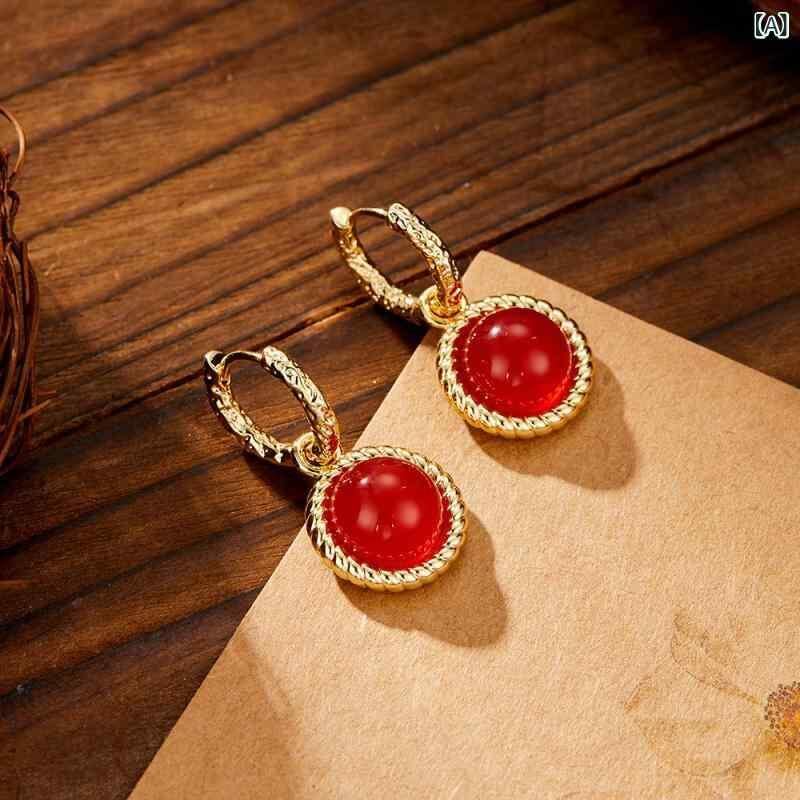 ピアス イヤリング レディース レトロ エレガント 赤瑪瑙 レッドアゲート 高級感あふれる 繊細 揺れる 開運 幸運 普段使い お出かけ パーティー フォーマル 幾何学デザイン