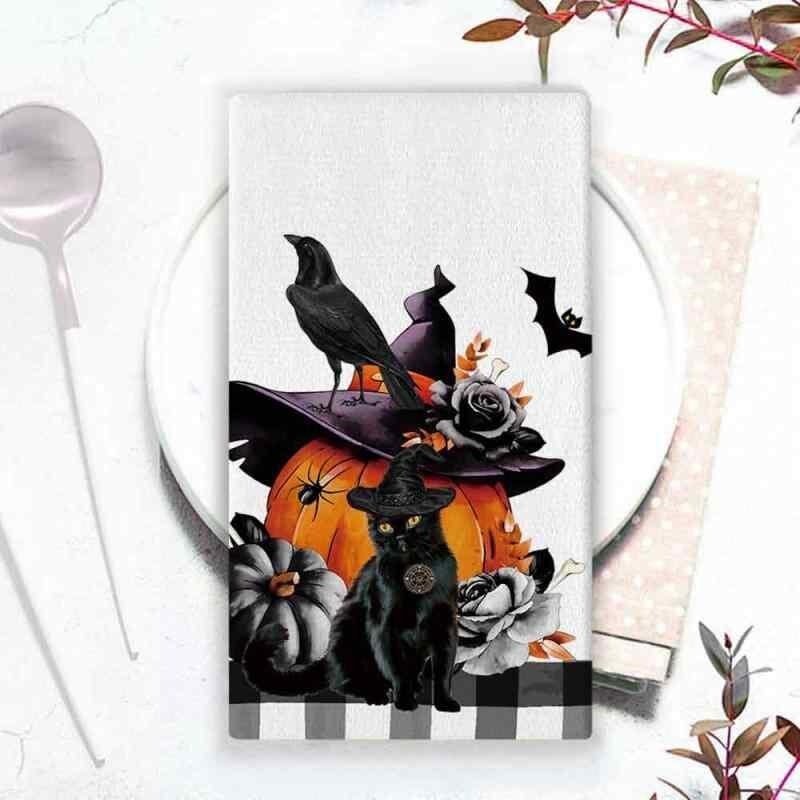 カウンタークロス マイクロファイバー ふきん ハロウィン 秋柄 カボチャ 魔女 高吸水 速乾性 キッチン 食器拭き 台拭き 複数枚セット