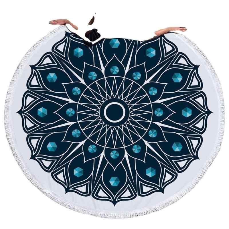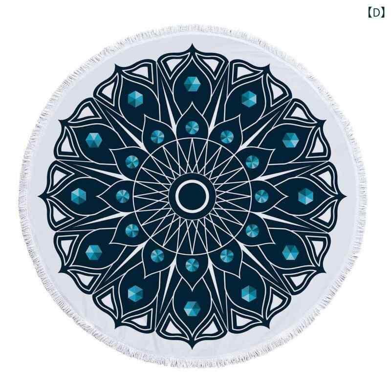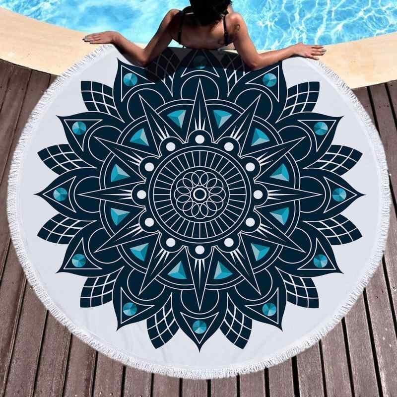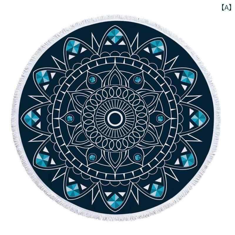 ビーチタオル マンダラ 花柄 円形 ラウンド マイクロファイバー 速乾 吸水 軽量 大判 フリンジ タッセル デジタルプリント 海 プール サマー レジャー おしゃれ