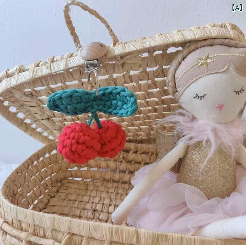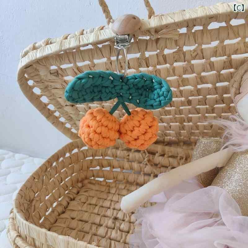 ベビー おもちゃ 韓国風 コットン 手編み さくらんぼ チェリーモチーフ ベビーカー 吊り飾り おしゃぶりクリップ ぐずり対策