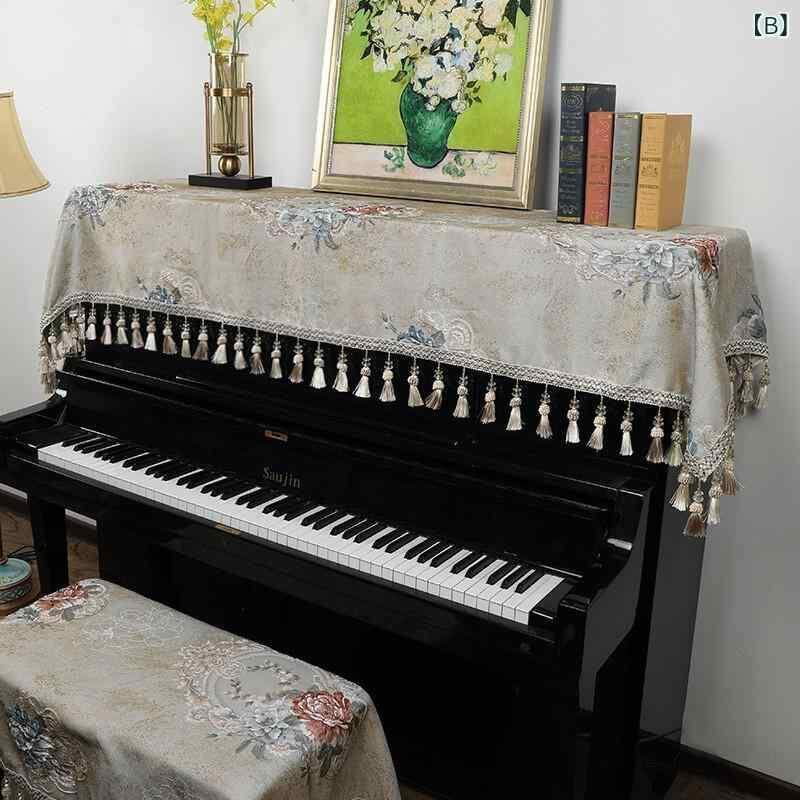 ピアノカバー ヨーロピアン 高級感 豪華 アップライトピアノ 電子ピアノ 88鍵対応 鍵盤保護 防塵 ハーフカバー 高品質 布製 ファブリック インテリア