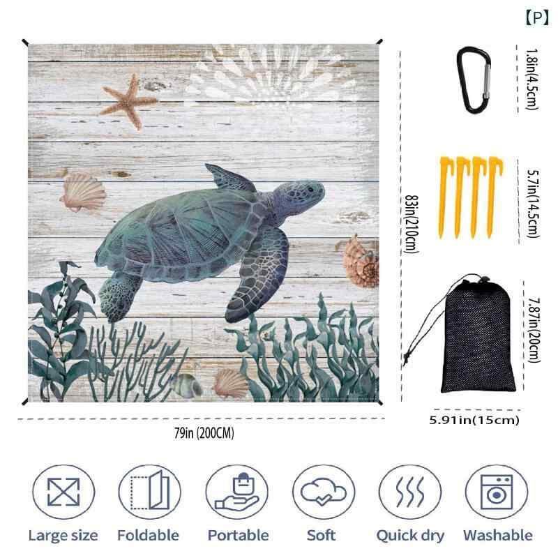 レジャーシート ピクニックシート アウトドア キャンプ ビーチ 砂浜用 防水 防砂 防湿 携帯 ポータブル コンパクト 大判 収納袋付き デジタルプリント