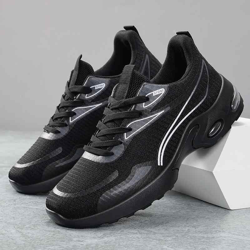 シューズ メンズ 男性 スニーカー 運動靴 ランニング ジョギング メッシュ エアクッション ソフトソール 通気性 軽量 衝撃吸収 クッション性 ローカット ラウンドトゥ レースアップ カジュアル スポーツ 春 秋 黒