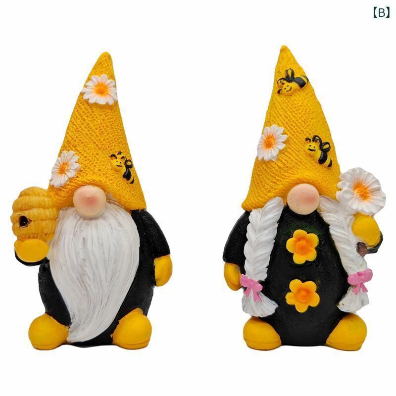 置物 レジン 樹脂製 ガーデン ミツバチ 蜂 ドワーフ 小人 デイジー ヒナギク 豊作モチーフ 顔なし人形 インテリア雑貨 ホームデコレーション 田園風