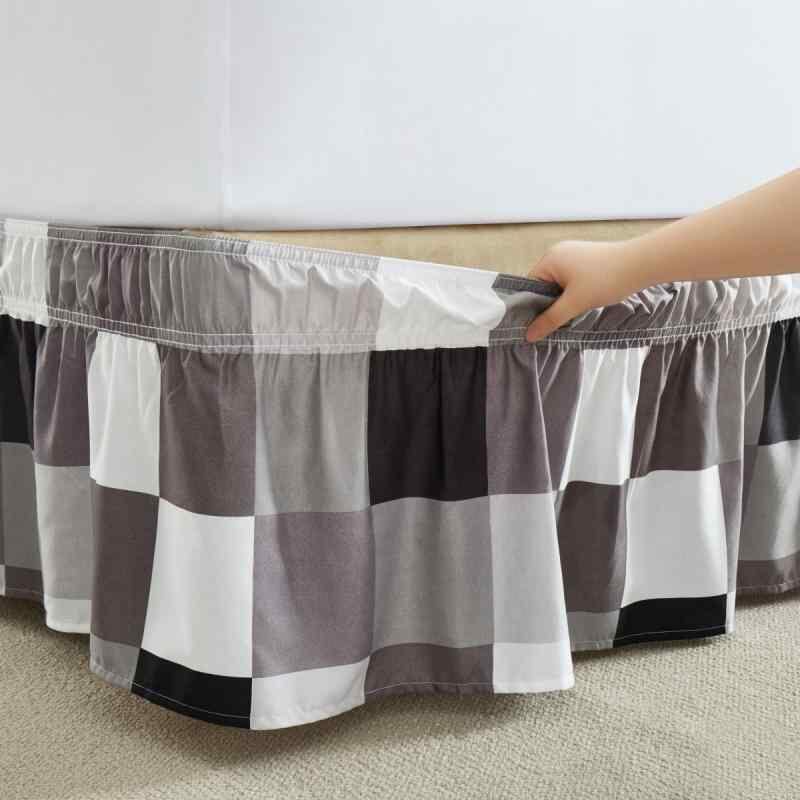 ベッドスカート 単品 ゴム入り プリーツ チェック柄 ホテル仕様 モダンデザイン グレー モノトーン シックカラー ポリエステル製 ピーチスキン加工 寝室インテリア